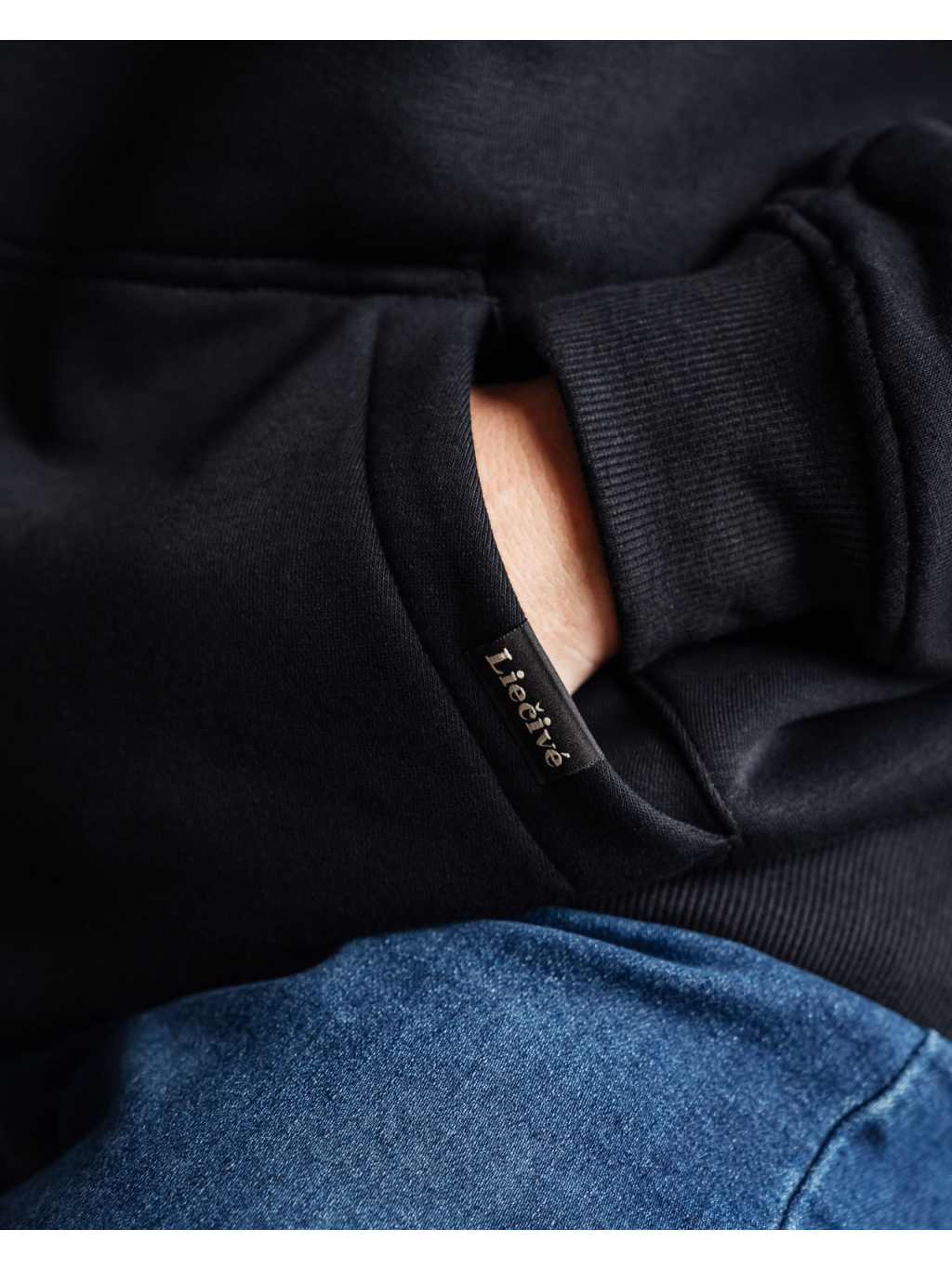 - Detaily: dvojvrstvová kapucňa, klokanie vrecko, rebrované manžety a spodný lem