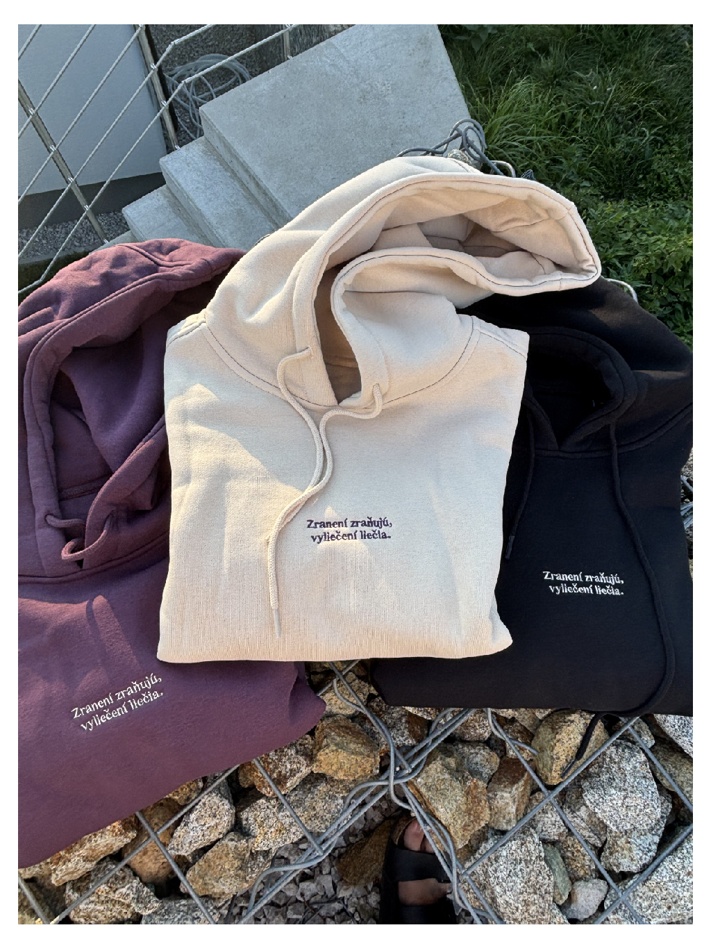 Mikina „Zranení zraňujú, vyliečení liečia.“